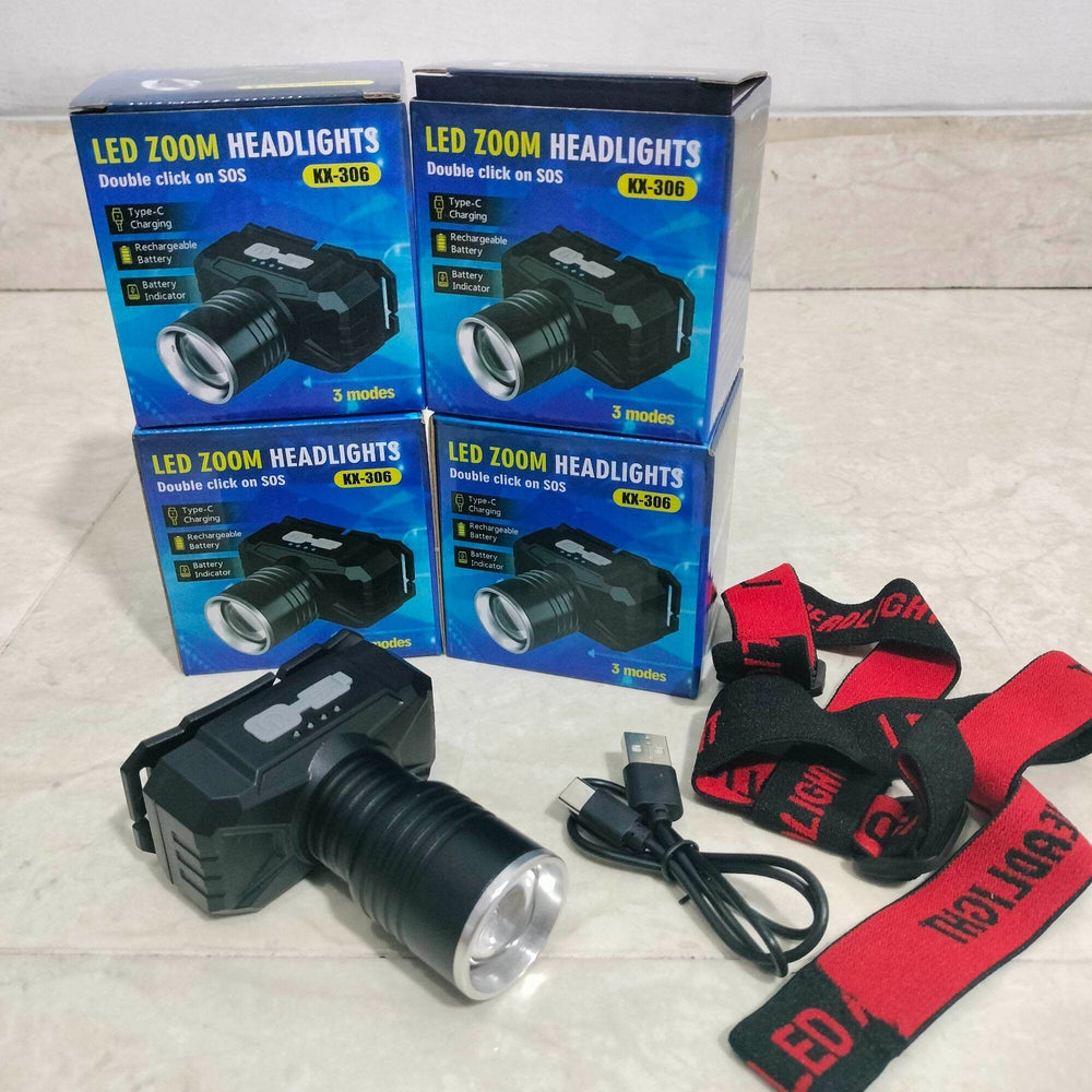 LED Zoom Headlamp KX-306 Double Click On SOS 3 Light Modes Battery Indicator Super Bright White Light