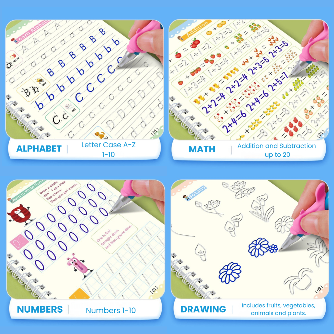 🚀 Tired of messy handwriting and wasted workbooks? The MagicGroove Tracing Book is designed to help kids master writing the fun way—with disappearing ink and grooved letters that guide proper pencil grip and stroke order!